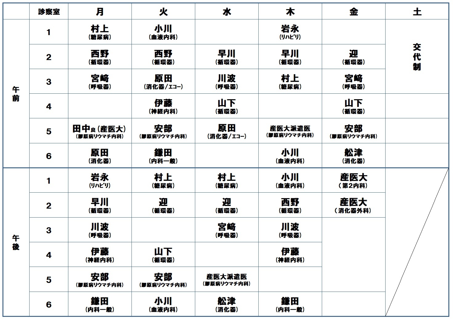 ※産業医科大学病院からの派遣医師は変更になる場合があります。