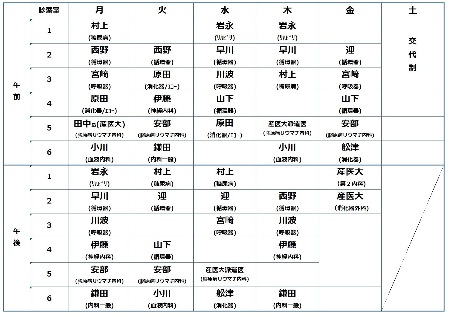 | 医師名 | 休診日 |